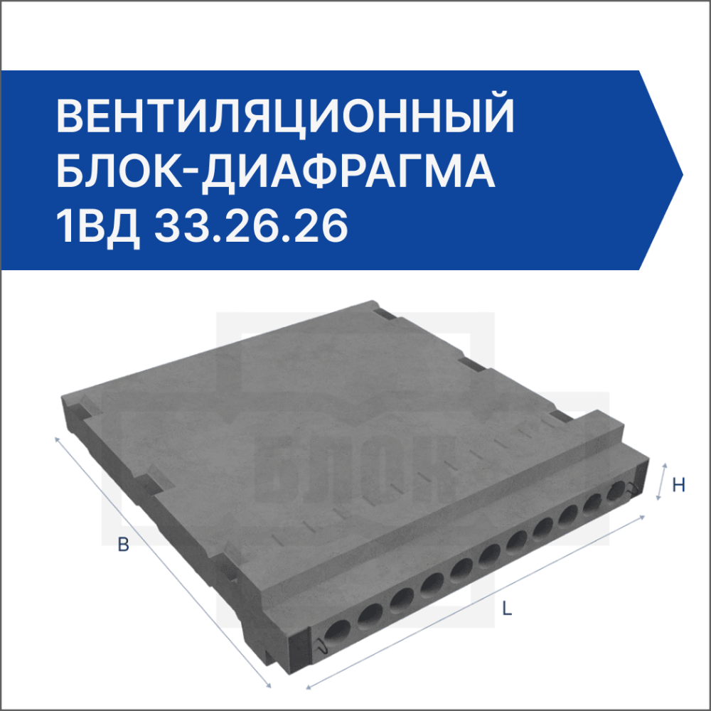 Вентиляционный блок марки 1ВД 33.26.26 с консолью для опирания плит перекрытия – это блок с отверстиями для вентиляционных каналов, который используется для вентиляции помещений. Блоки вентиляции 1ВД 33.26.26 с консолью для опирания плит перекрытия используют в качестве конструктивного элемента вентиляции общественных зданий таких помещений, как кухни, сантехнические узлы и жилые помещения. Железобетонные вентиляционные блоки применяют в помещениях с неблагоприятным режимом влажности в целях создания искусственной циркуляции воздуха.