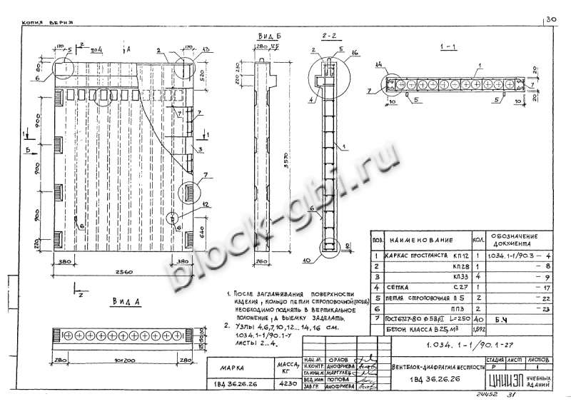 Вентиляционные блоки 1ВД 36.26.26 с консолью для опирания плит перекрытия изготавливают согласно ГОСТ 17079-88.