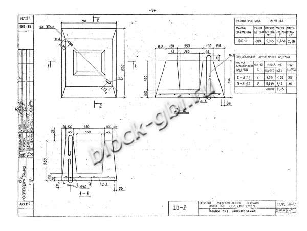 Фундаменты ФО-2 транспортируются в горизонтальном положении, в штабелях с деревянными прокладками между изделиями. Хранение рекомендуется на ровной, очищенной площадке. Погрузка и разгрузка осуществляется при помощи стандартных стропов и монтажных петель.